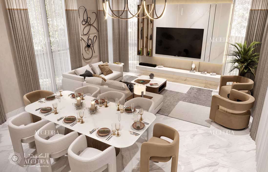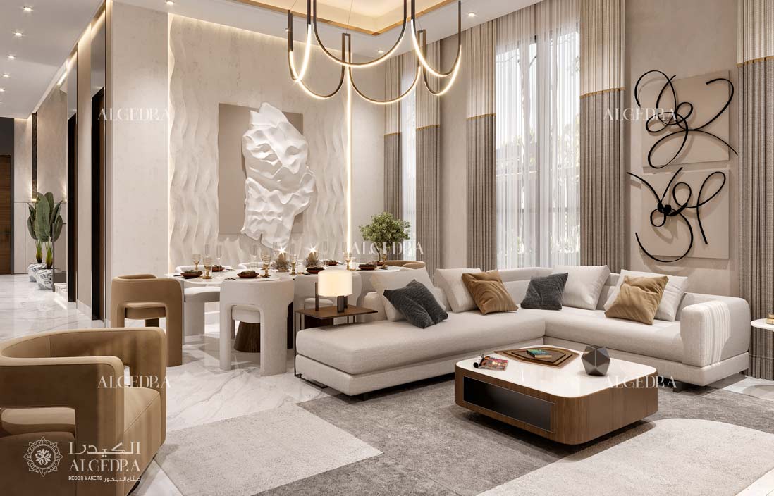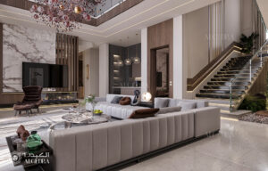 Full interior design work for villas, townhouses, apartments and commercial spaces. This includes concept development, material selection, layout planning and interior styling suited to client expectations in Dubai, Abu Dhabi and the wider UAE.
