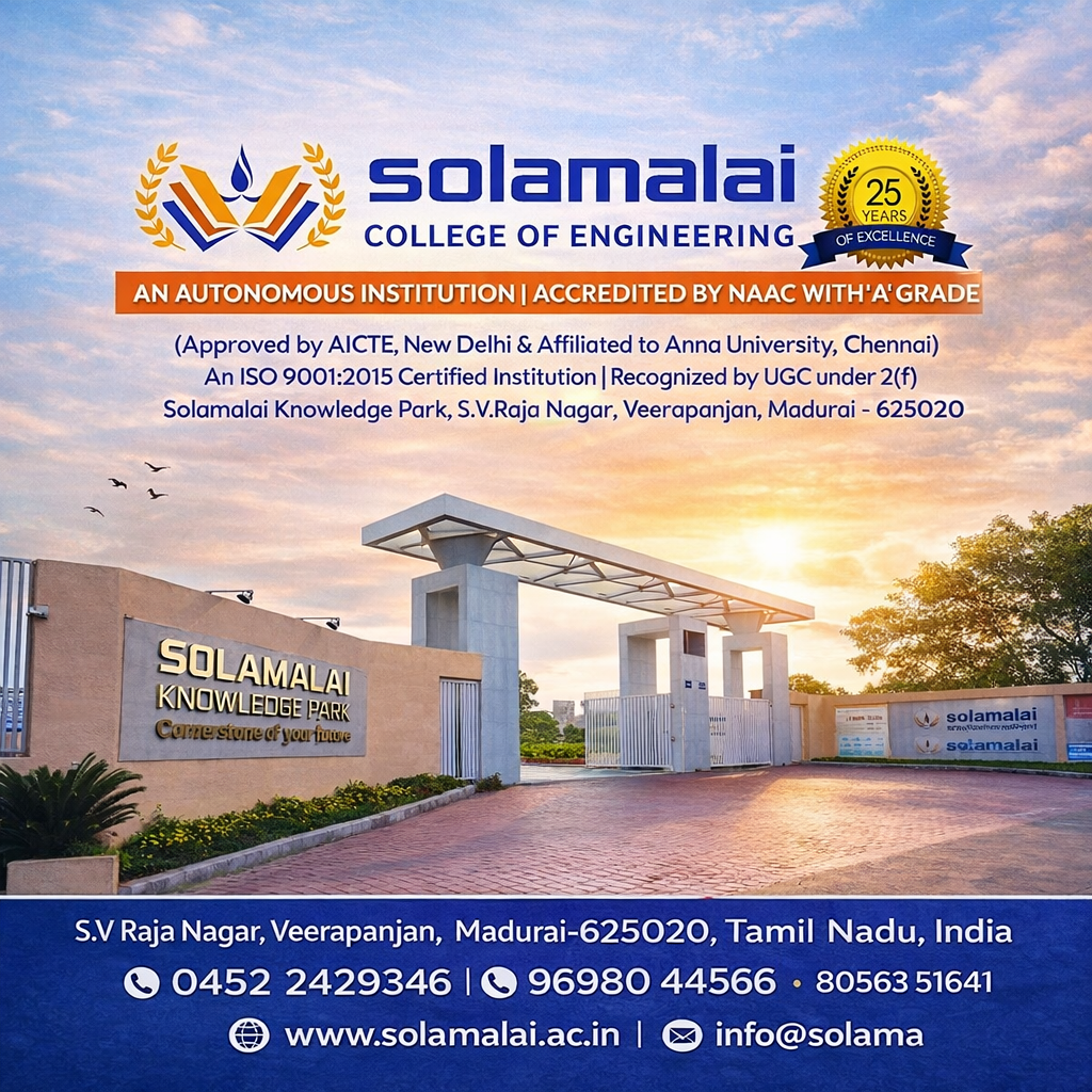 Solamalai College of Engineering regularly shares updates related to academic schedules, examination notifications, campus events, and student activities. Students can check the official website for the latest announcements about programs, workshops, and important academic information at the campus in Madurai.